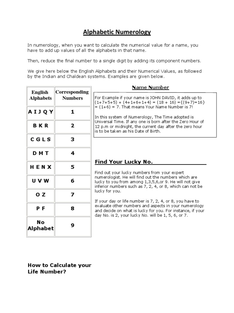 As you can see from the chart below, alphabet numbers. In this guide to the basics of numerology, we explain how to use your birthday and name to easily calculate your life path number and destiny number — and what the results really mean.